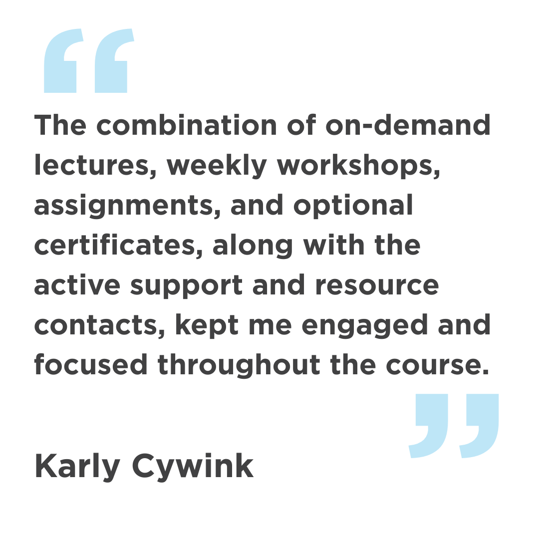 My experience with Jelly Academy was transformative and highly rewarding, the structure and content of the program was competitive, engaging, and fun. Each module was thoughtfully designed to ensure that students could engage deeply with the content while applying their knowledge in practical, real-world settings. For me, the combination of on-demand lectures, weekly workshops, assignments, and optional certificates, along with the active support and resource contacts, kept me engaged and focused throughout the course. I was specifically drawn to this program for its ability to connect the students to certificates like Google Analytics, HubSpot Marketing, Meltwater Media Monitoring, SemRush Content Marketing and SEO Fundamentals, and more.
